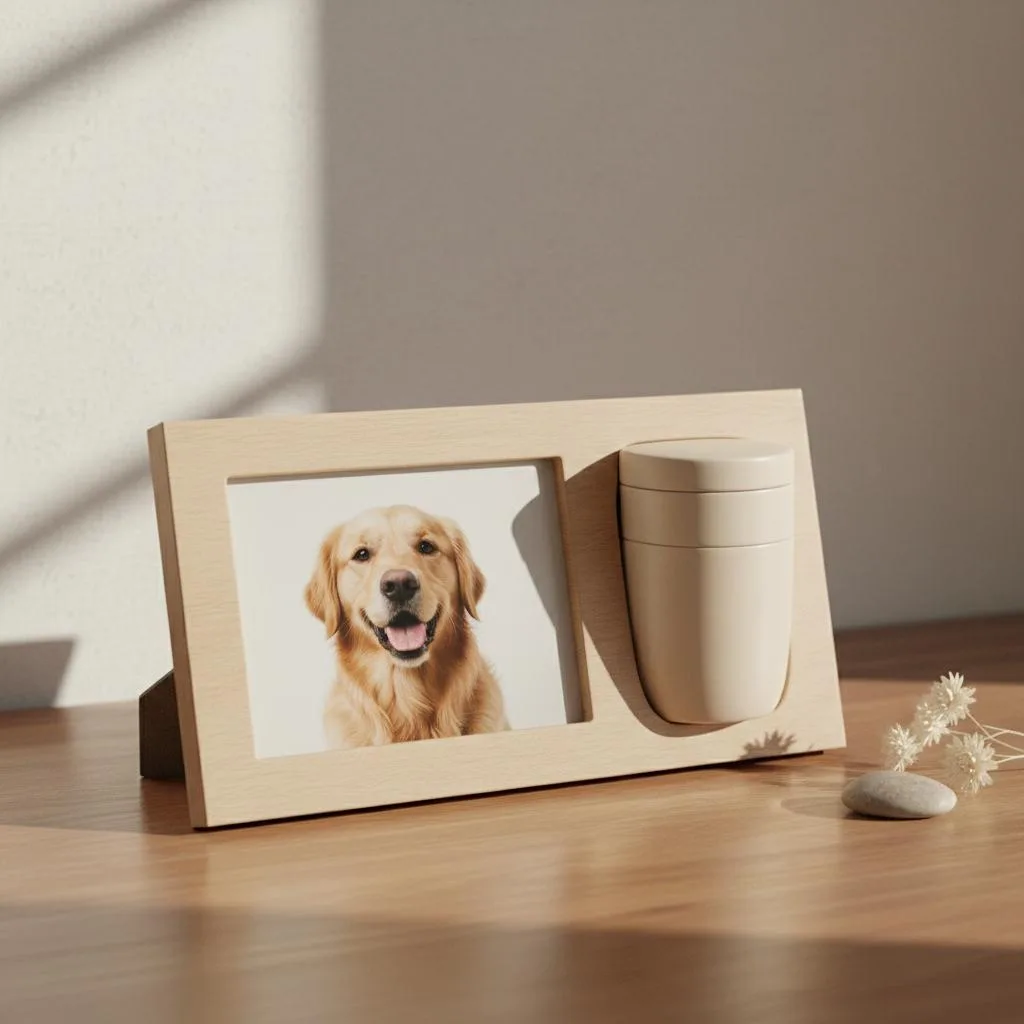 写真と骨壷を一体化。想い出の写真を飾りながら、静かに大切に保管できます。